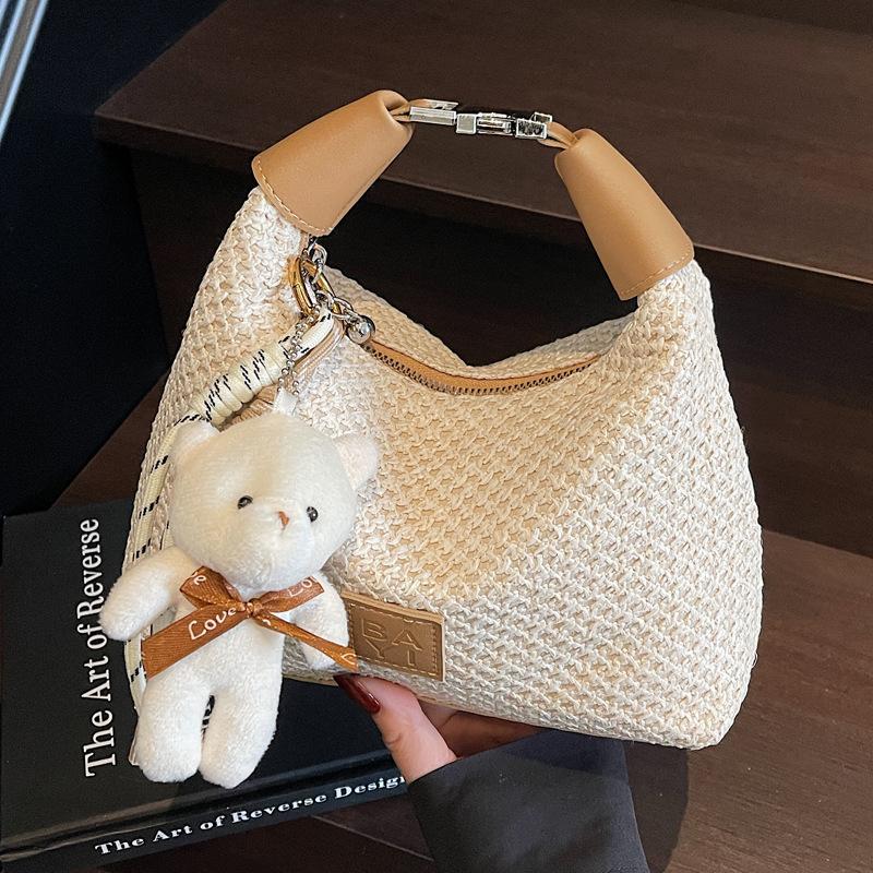 Woven Straw Bag Women's 2025 New Summer Niche Design Messenger Bag Versatile High-end Portable Dumpling Bag