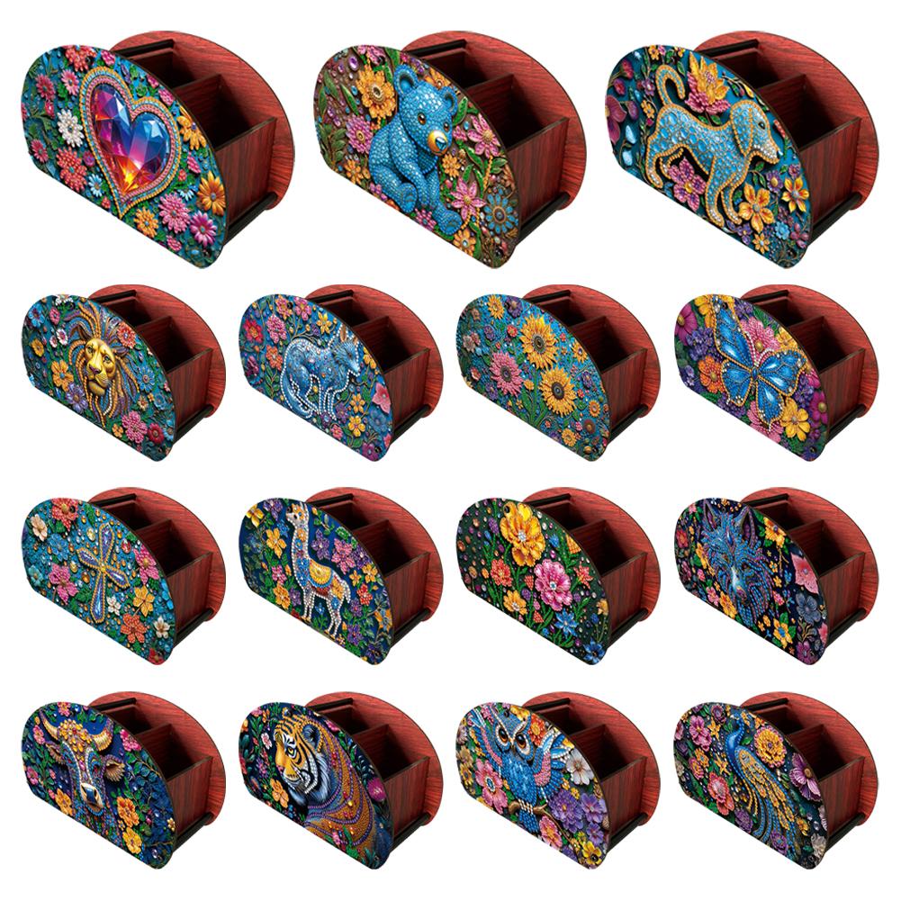 DIY Wooden Diamond Painting Storage Cosmetic Tool Holder Animal Pattern Diamond Painting Art Kit Organizer Box Desk Accessories