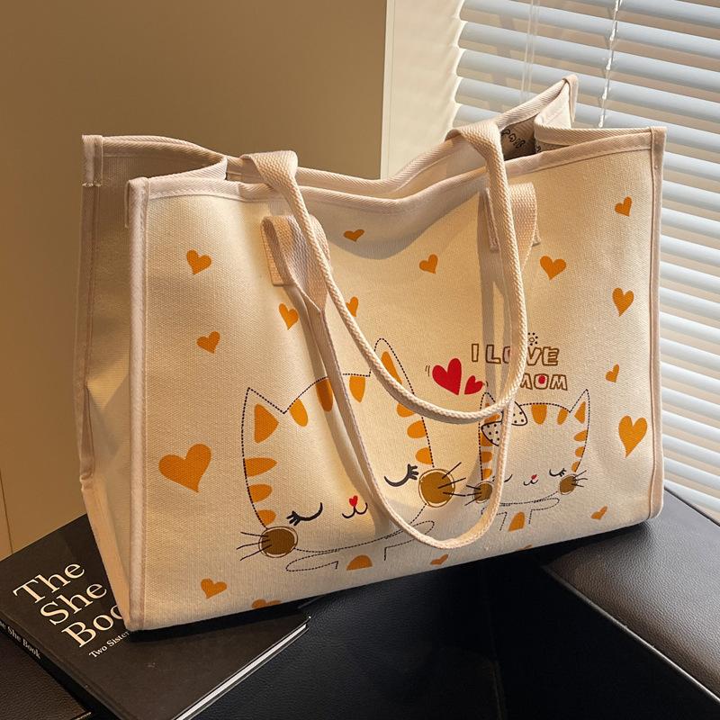 Large Capacity Canvas Bag Women's Spring and Summer 2025 New Versatile Student Class Commuter Bag Japanese and Korean Ins Tote Bag