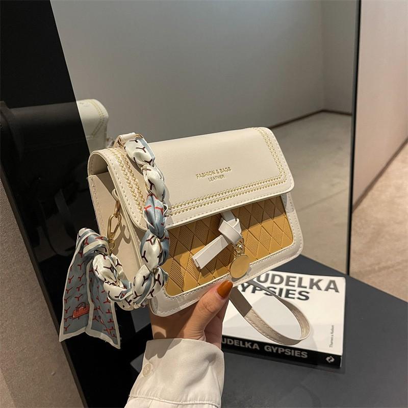 Popular Fresh Small Square Bag Silk Scarf New Fashion Niche Design Shoulder Bag Foreign Cream Sweet Oblique Straddle Women's Bag