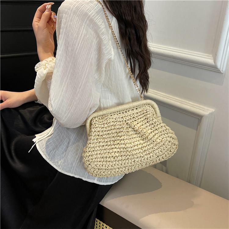 Woven Bag Women's 2025 New Fashion Versatile Clutch Bag High Value Hollow Contrasting Color Shoulder Bag Chain Messenger Bag