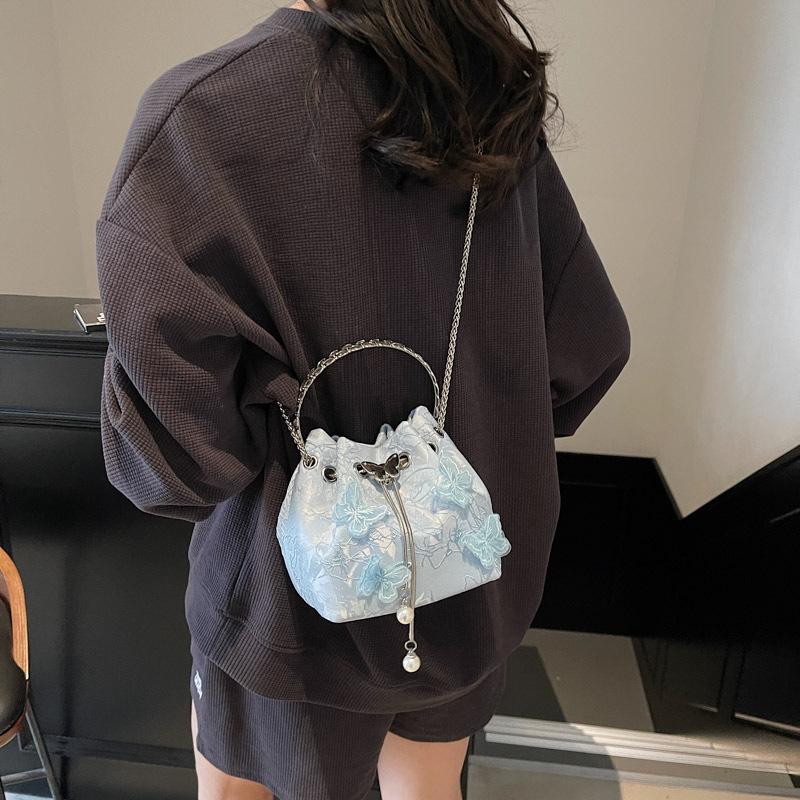 New Portable Chain Bucket Bag Women's 2025 Spring and Summer High-end Sense of Tide National Style Embroidery Niche Shoulder Messenger Bag