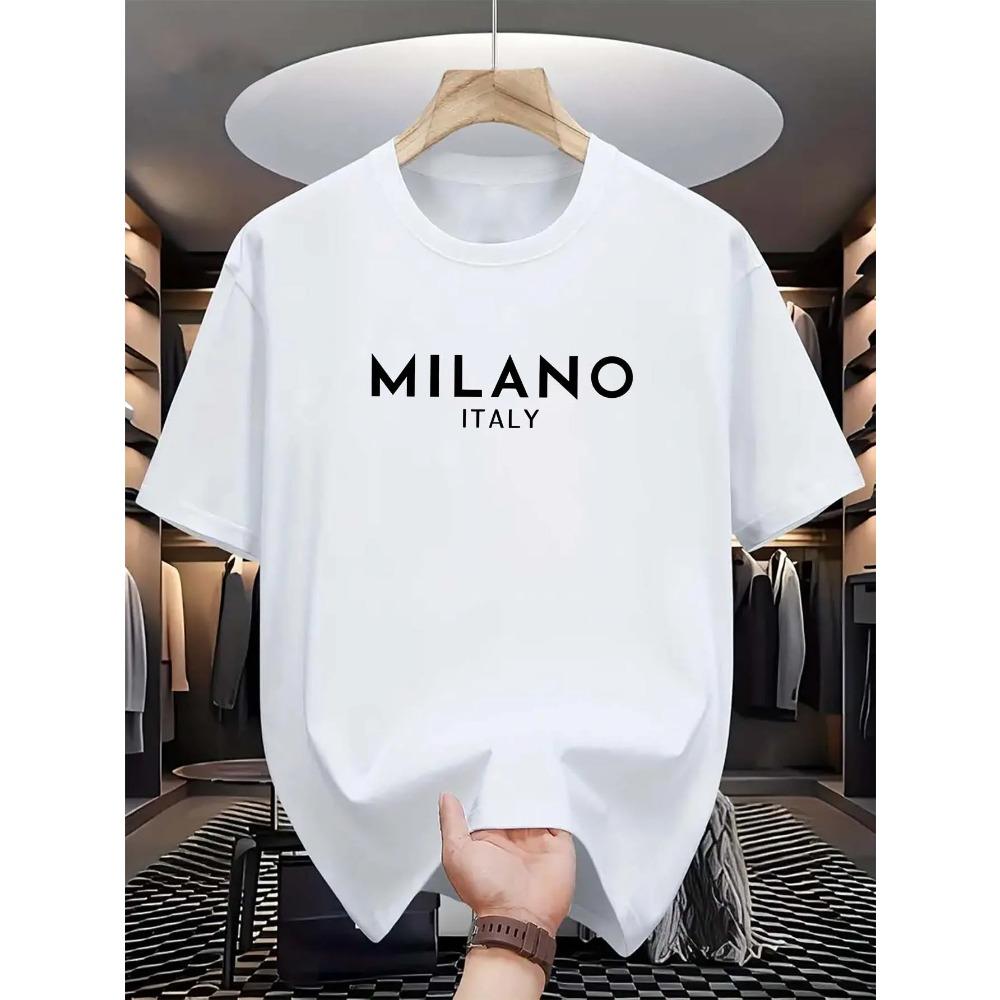 Summer Men's 100% Pure Cotton Casual Loose and Fashionable MILANO ITALY Letter Printed Round Neck Short Sleeved T-shirt Top