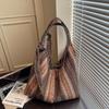 Lazy Wind Tote Bag Large Capacity Women's New Retro Oblique Span Bag Fashionable Versatile Canvas Bag Striped Shoulder Bag