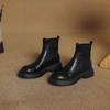 Autumn and Winter Platform Large Size Medium Boots Women's Comfortable Non-slip Low Heel Round Head Leather Boots New Korean Version of Black Fash