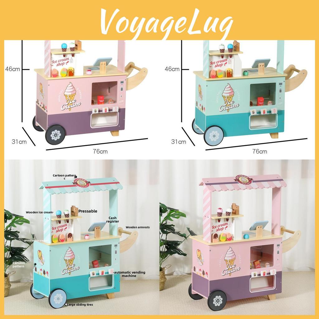 Wooden Ice Cream Cart Toy Playset With Cash Register For Kids Creative Play