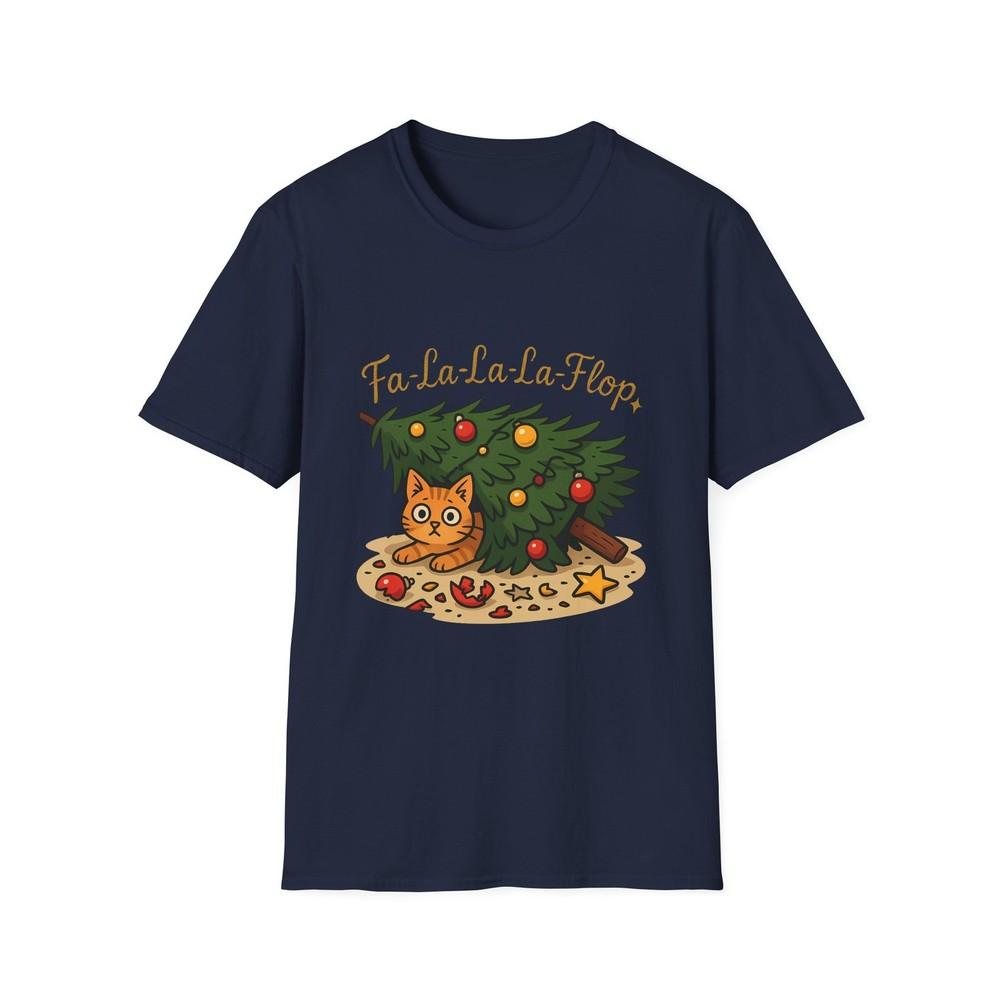 Unisex Softstyle T-Shirt Christmas Tree Collapse Shattered Ornaments Cat Chaos