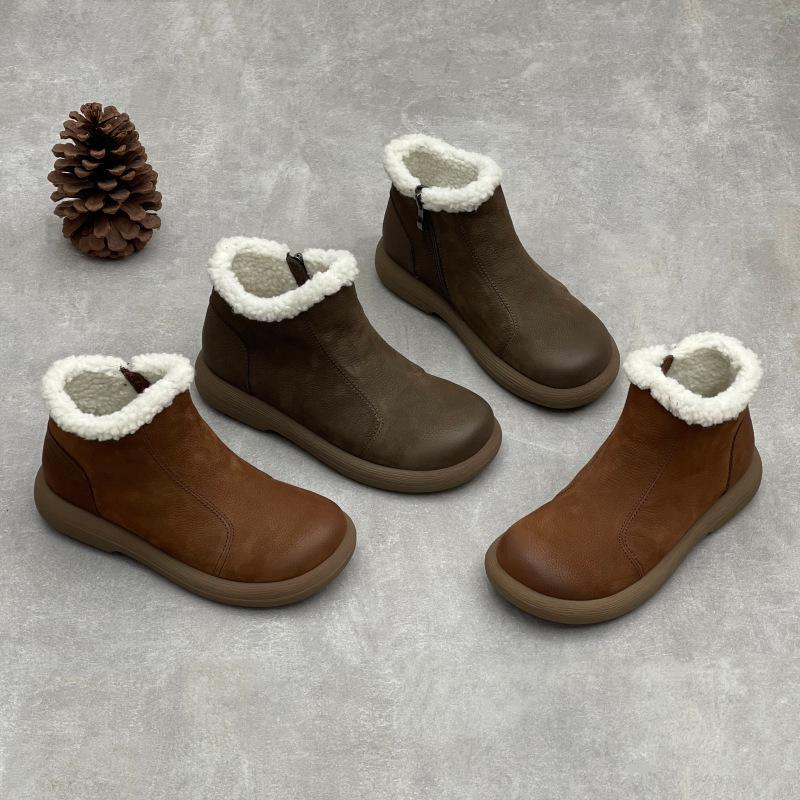 New Style Snow Boots, Round Toe Shoes, Flat, Thickened, Warm Women's Ankle Boots, Cotton Boots
