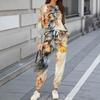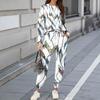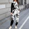Sets For Women 2 Piece Round Neck Long Sleeve Shirts Printed Sweatpants Pocket Sets