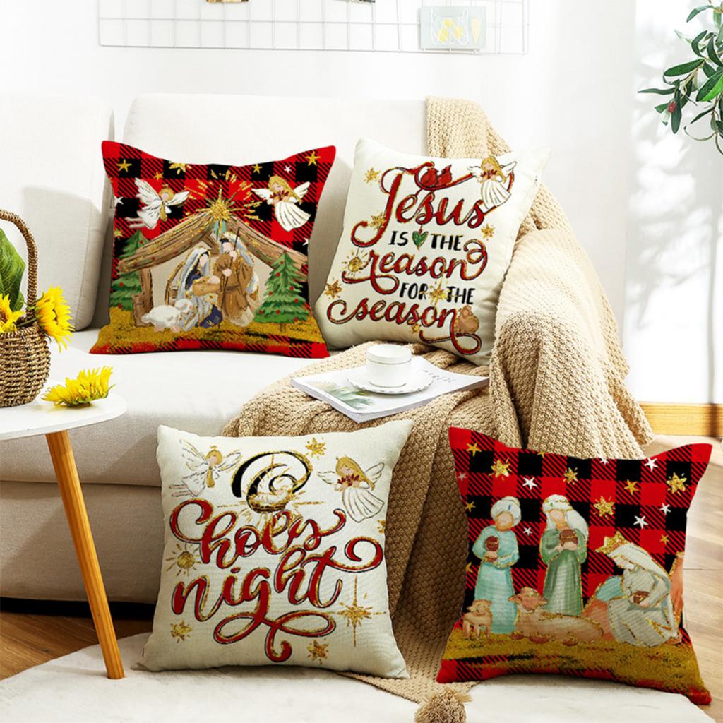 Christmas Series Pillowcase Christmas Holiday Atmosphere Decoration Living Room Sofa Cushion Printed Pillowcase Atmospheric Decorative Linen Pillow