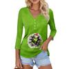 Women's Casual Fashion Sexy Comfortable Christmas Print V-Neck Button Three-quarter Sleeve Top
