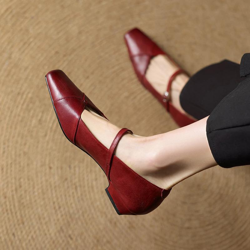 New Comfortable Beef Tendon Small Leather Shoes Low Heel One Pedal Four Seasons Wear Fashion Single Shoes Leather Large Size Shoes Flat Heel Square