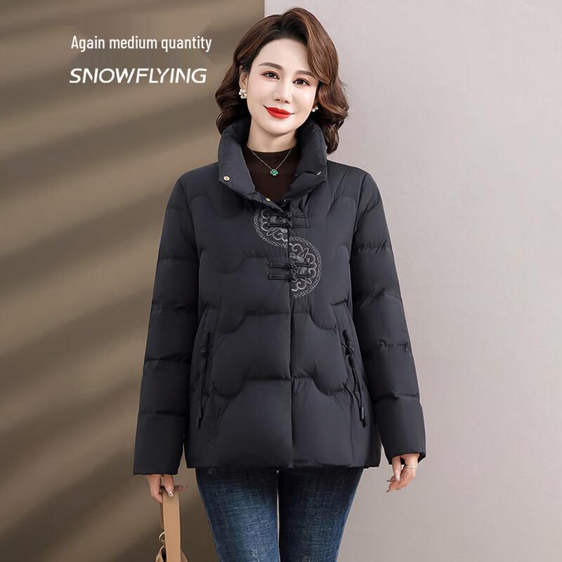 SNOWFLYING Women's Mid-Aged Chinese Style Short Down Jacket