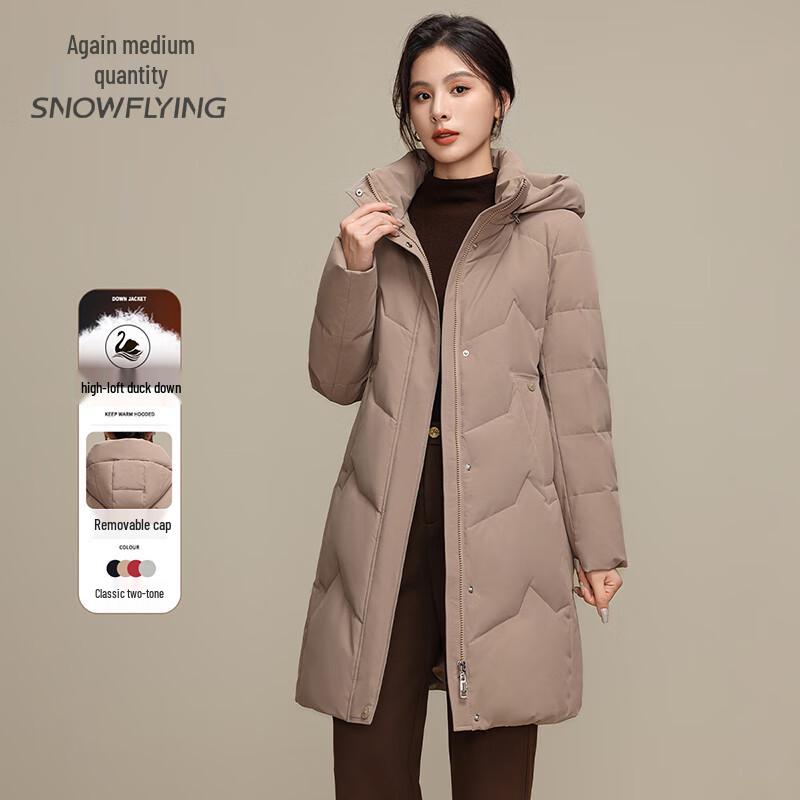 SNOWFLYING Women's Mid-Length Detachable Hood Down Jacket
