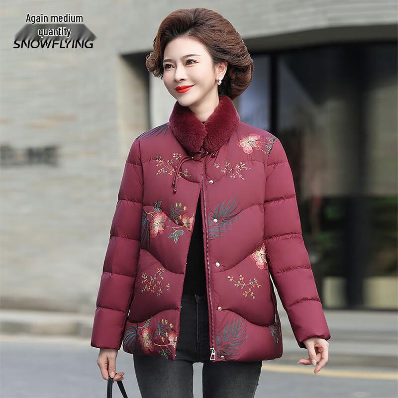 Xuezhongfei Women's Embroidered Rex Rabbit Fur Collar Down Jacket