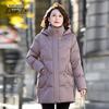 XueZhongFei Women's 2025 Winter Mid-Length Loose Hooded Down Jacket for Older Mothers