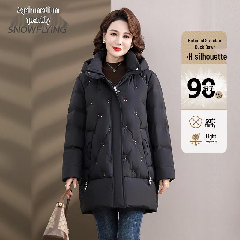 Snowflying Women's Mid-length Hooded Duck Down Jacket