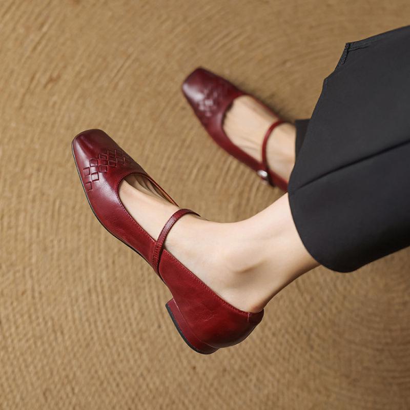 New Four-season Wear Women's Single Shoes Casual Low-top Women's Single Shoes Solid-color Leather Large-size Shoes Square Head and One Pedal Shallow M