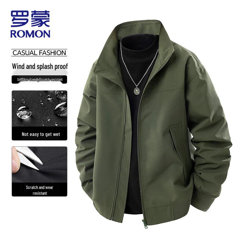 ROMON Men's Business Casual Stand Collar Work Jacket