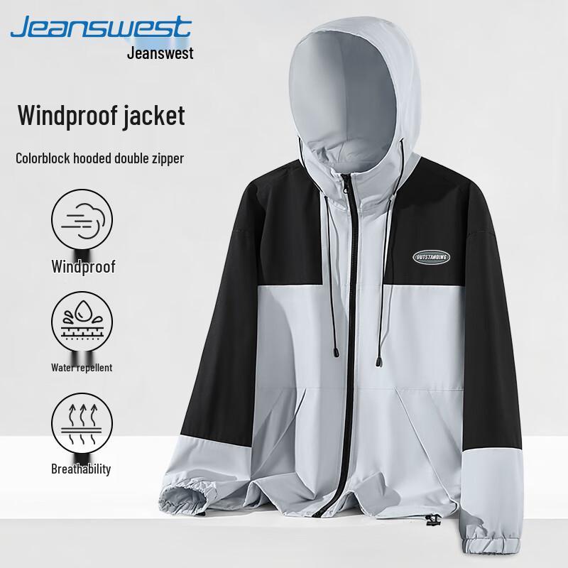 Jeanswest Men's 2025 Spring Hooded Windproof Water-Repellent Outdoor Jacket