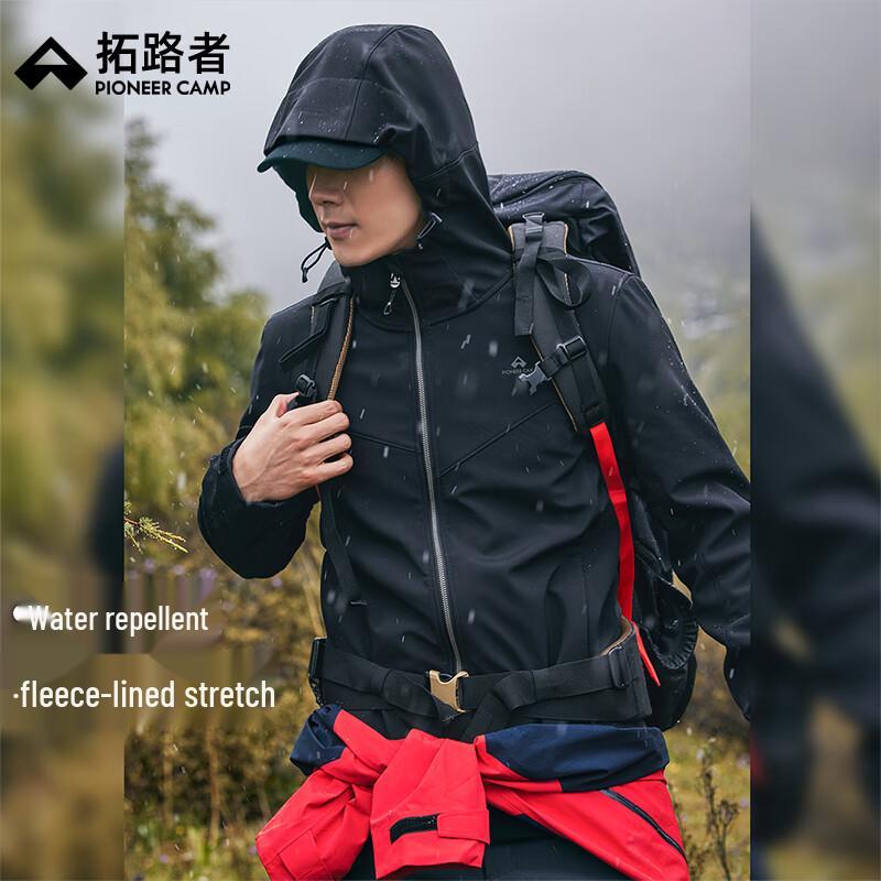 Men's Outdoor Windproof Waterproof Fleece-Lined Soft Shell Jacket