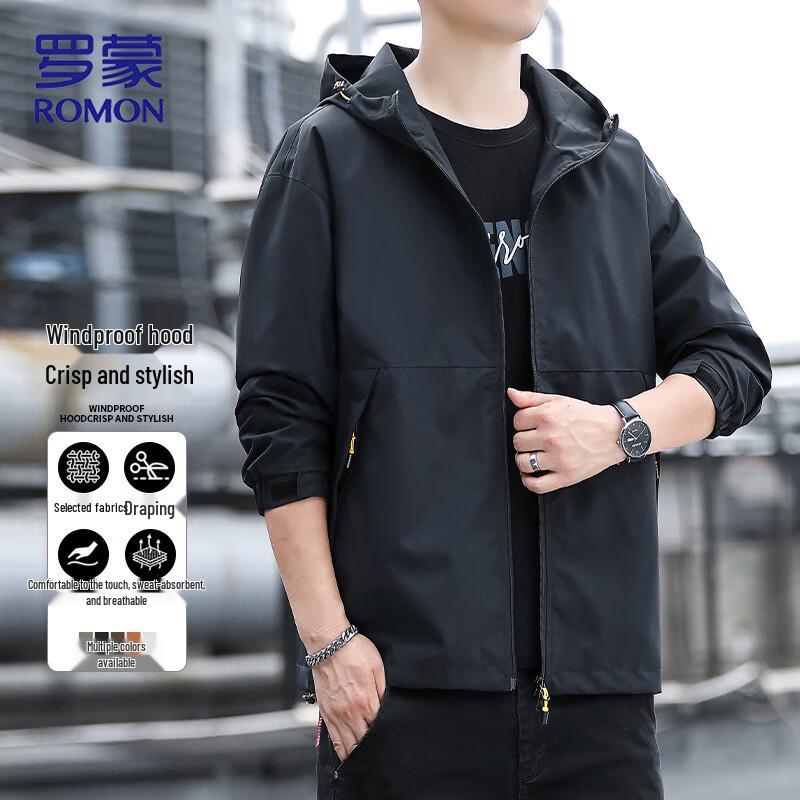 ROMON Men's Autumn Hooded Windproof Business Casual Jacket