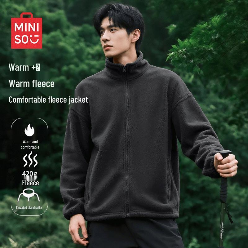 MINISO Men's Winter Warm Double-Sided Fleece Stand Collar Jacket