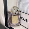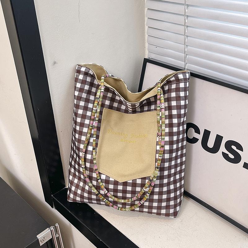 American Double-sided Bag Plaid Canvas Bag Women's Commuter Tote Bag Retro Contrasting Color Handbag Spring New Parent-child Bag