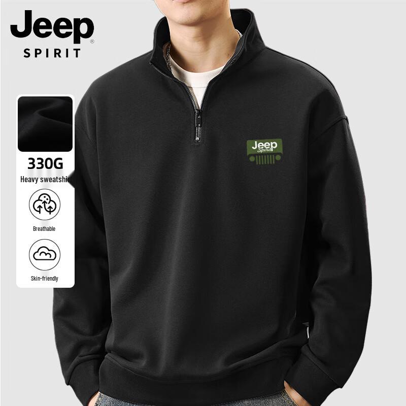 JEEP SPIRIT Men's Heavyweight Printed Stand-Collar Sweatshirt