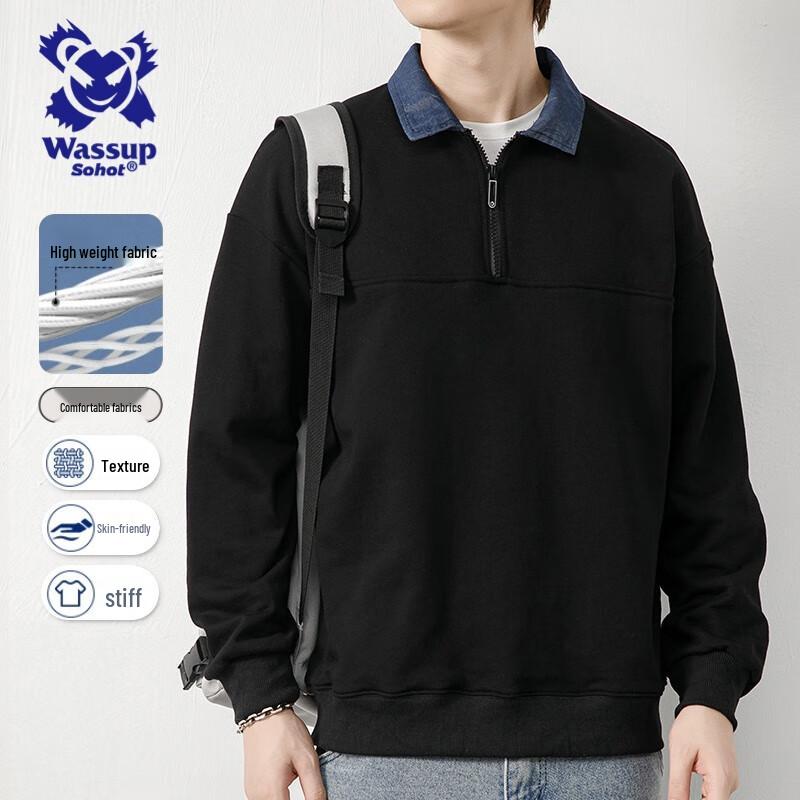 Wassup Sohot Men's Half-Zip Long-Sleeve Polo Sweatshirt