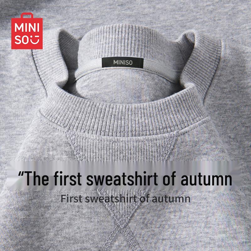 MINISO Men's American College Style Heavyweight Crew Neck Pullover Sweatshirt
