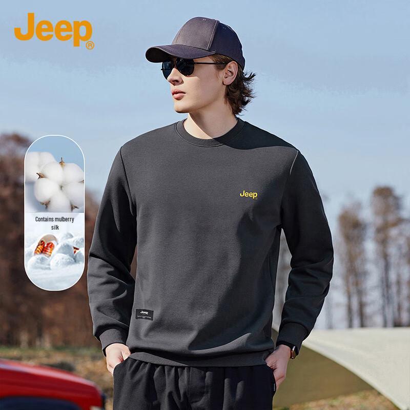 Jeep Men's Embroidered Mulberry Silk Blend Loose Sweatshirt