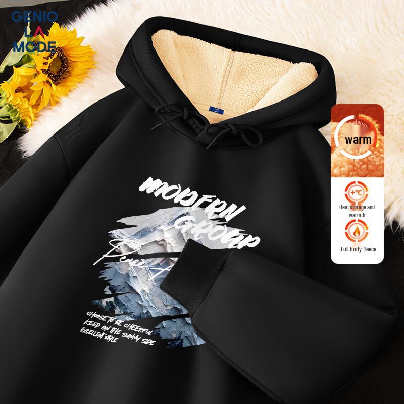 GENIOLAMODE Men's Snow Mountain Print Heavyweight Fleece Hoodie