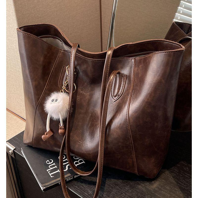 Bag Women's Large Capacity 2025 New Autumn and Winter High-end Brown College Student Class Shoulder Bag Commuter Tote Bag