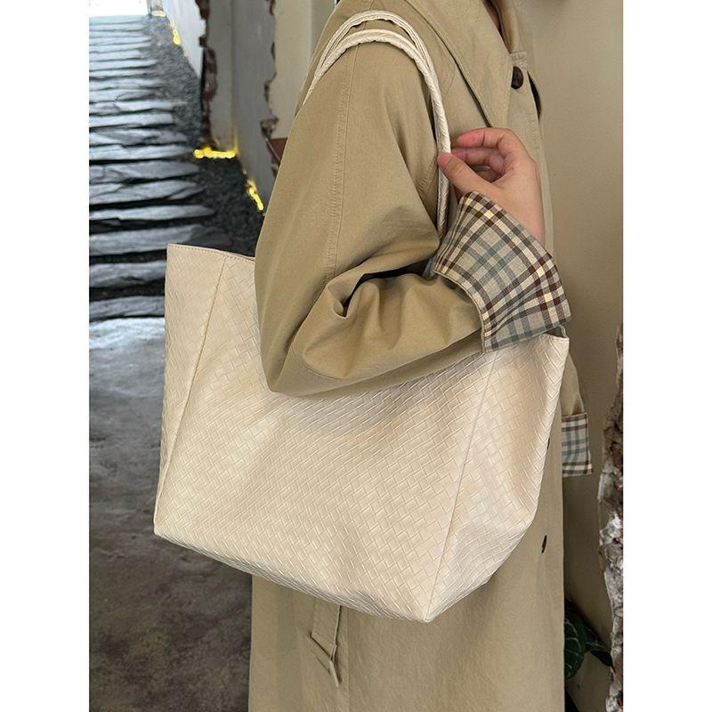 New Large-capacity Soft Leather Woven Bag Korean High-end Niche Shoulder Bag Commuter Tote Bag