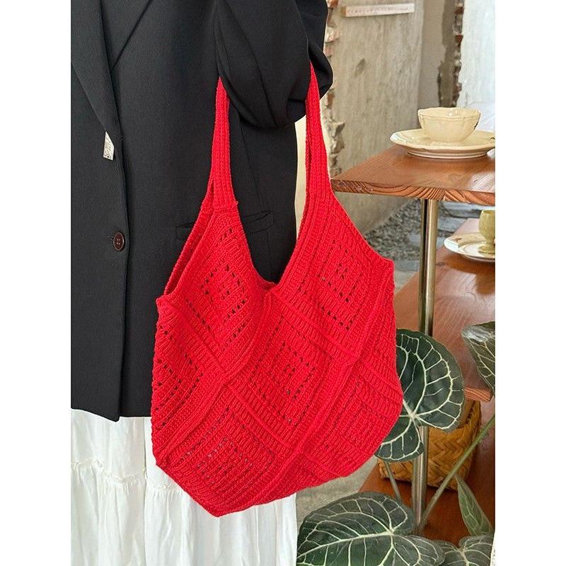 New Handmade Hollow Knitted Bag Women's Large-capacity Seaside Vacation Shoulder Bag Casual Versatile Commuter Tote Bag
