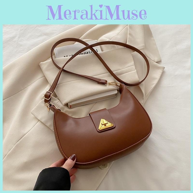 Shoulder Crossbody Fashion Bag With Triangular Metal Buckle Decoration Daily For