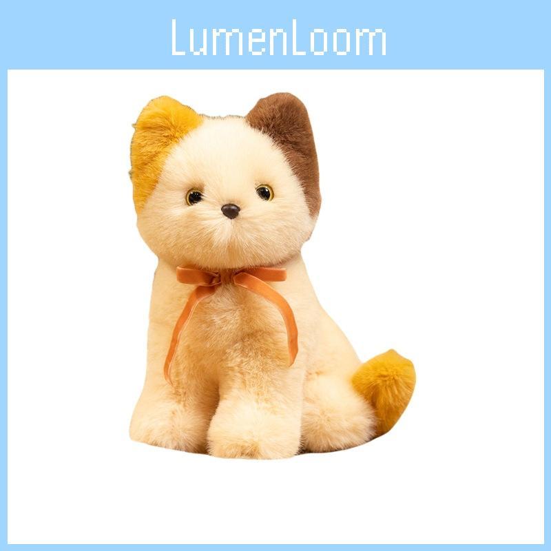 Cat Cuter Plush Doll With Squat Design And Bow Decor For Kids Gift Birthday