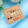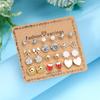 European & American Gold Fashion 12-Pair Rhinestone Stud Earring Set: Hearts, Feathers, Figure 8, Stars