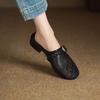 3Cm Thick Heel Leather Hollow Roman Bag Head Half Slippers Women's Outer Wear 2025 New Woven Mary Jane Mill Shoes