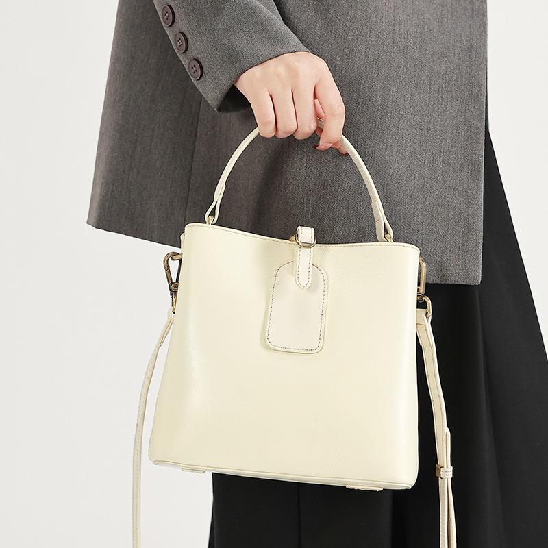 First Layer Cowhide Bag Women's New Fashionable Versatile Bucket Bag High-end Large-capacity Messenger Bag Shoulder Bag