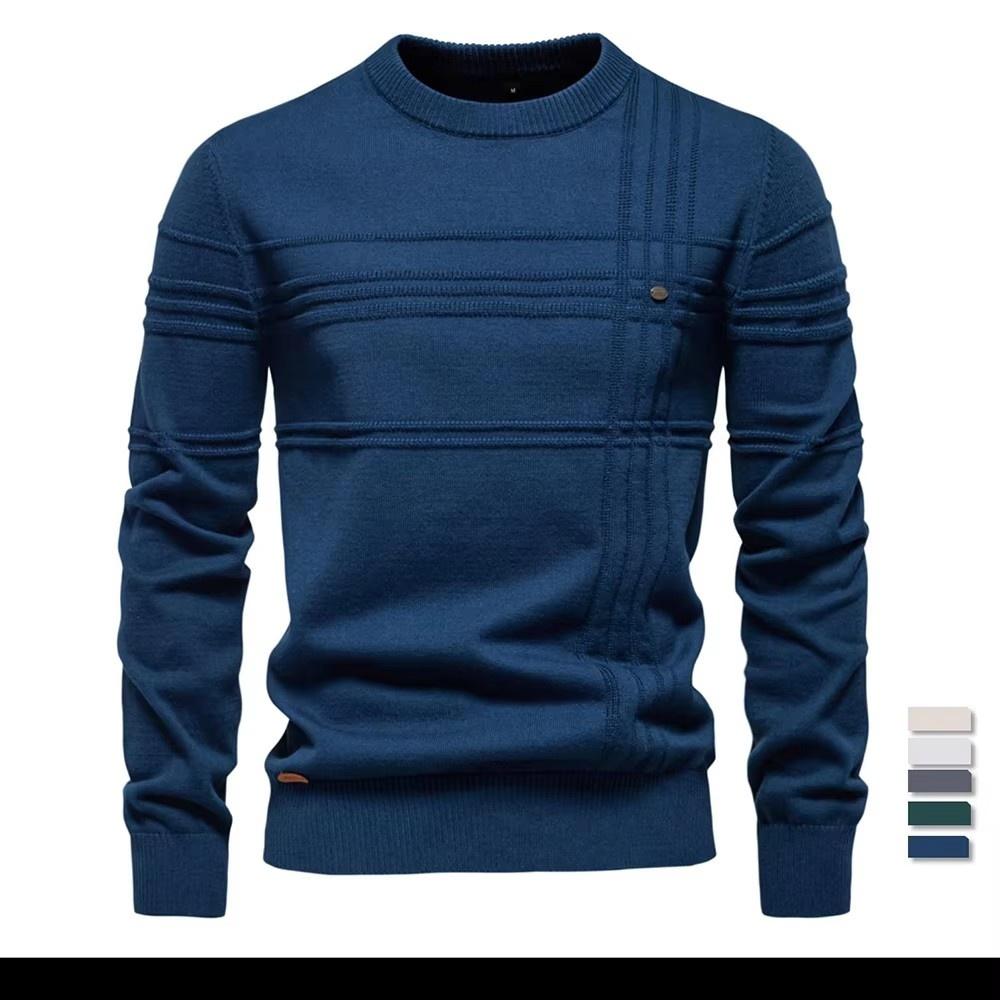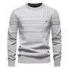 Mens Crewneck Pullover Sweater Knitted Cotton Stripped Quality Autumn Winter Warm Sweaters for Men