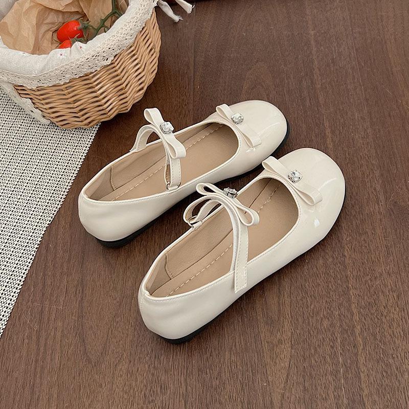 French Mary Jane Single Shoes Bow Women's Shoes Spring and Summer New Rhinestone Low Heel Flats Fashion Beanie Shoes