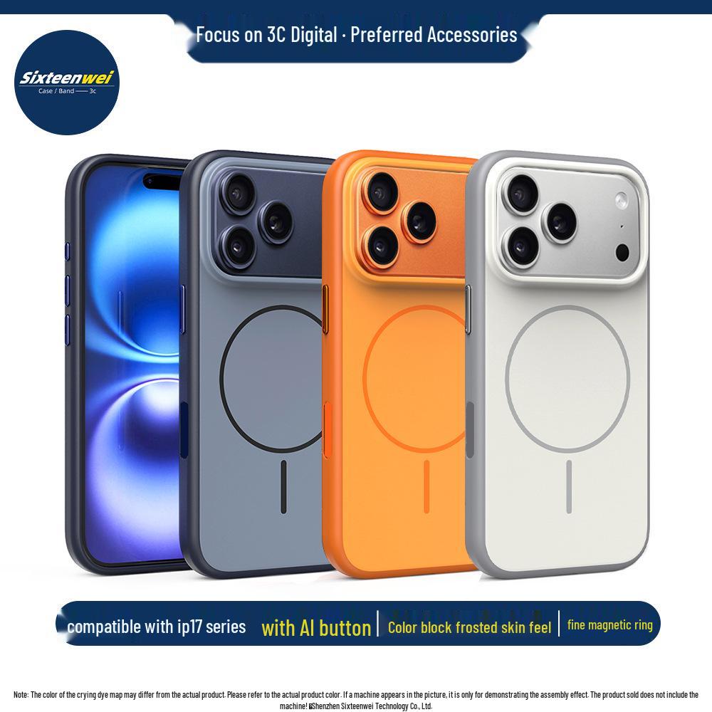 iPhone 17 Pro Max MagSafe-Compatible Thin Ring Magnetic Case with AI Button.