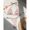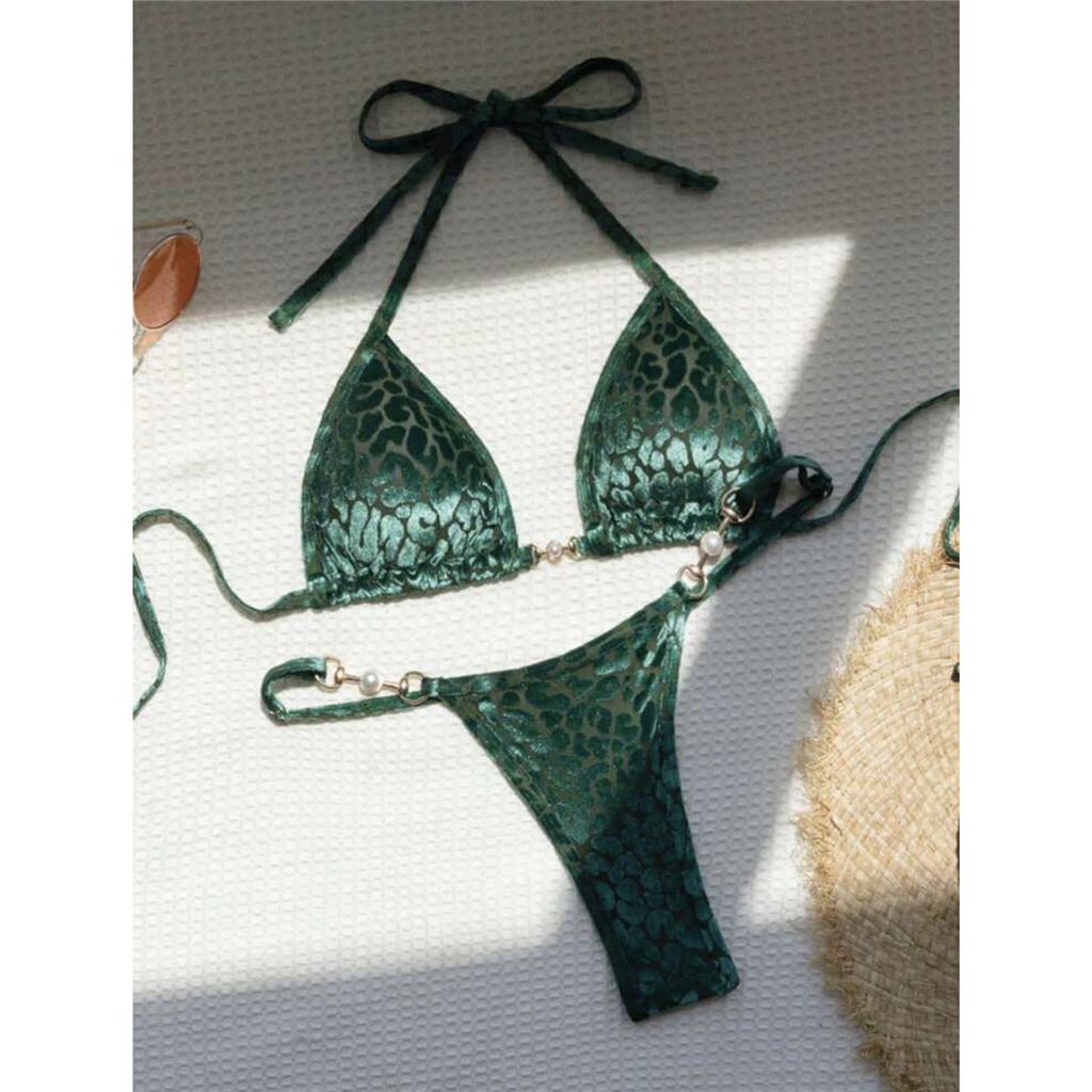 S - XL Leopard Pearl Mini Micro Thong Bikini Female Swimsuit Women Swimwear Two-piece Bikini Set Bather Bathing Suit Swim V5207B