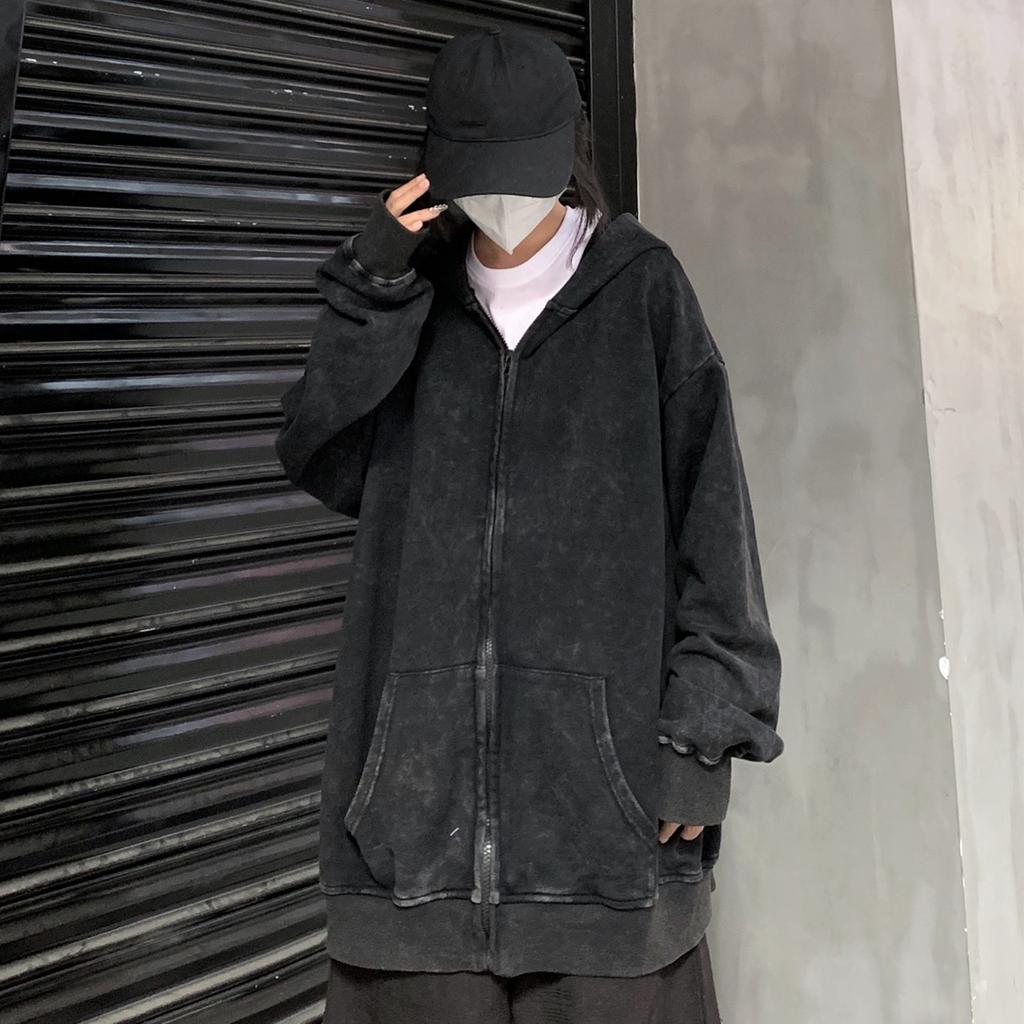 Wind Cardigan Sweater Men Washed Old Hooded Loose Coats with Ancient Lovers.