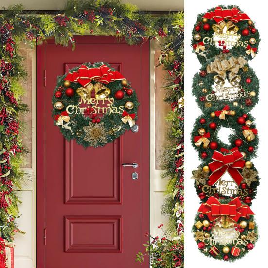 Enhance your home decor with our exquisite Christmas Wreath, crafted from durable PVC material. Adorned with bells, Christmas balls, bows, and vibrant flowers, it adds a festive touch to any space.