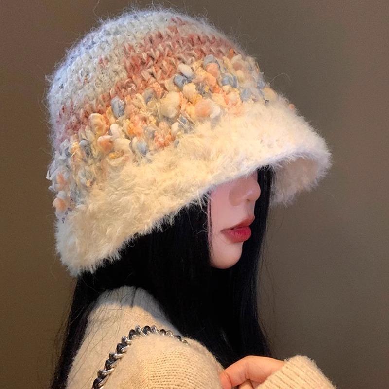 Japanese Plush Knitted Fisherman Hat for Women In Autumn and Winter Korean Style Face Showing Small Bucket Hat Warm and Cold Proof Woolen Hat Trendy