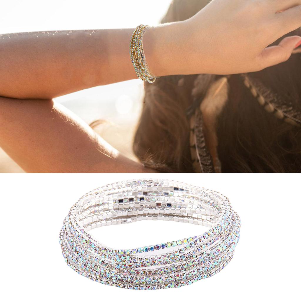 Fashionable Colorful Gemstones Bracelet Crystal Beaded Wristchain Elastic Rhinestones Handchain Accessory for Party