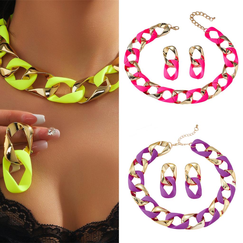 Women Colorful Earrings and Necklace Set Geometric Hip Hop Women Neck Jewelry Daily Wear Jewelry Set for Any Occasion